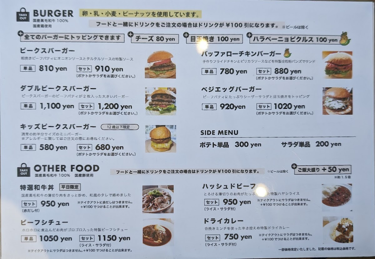 Welcome to Peaks Cafe, nestled at 266 Sekinomiya in Yabu, Hyogo. This charming cafe, perched above a meat shop, is a hidden gem for burger lovers. The menu dazzles with succulent patties, renowned for their exceptional taste, complemented by a signature onion sauce that elevates each bite. The crisp, thin fries transport you back to your favorite fast-food memories, reminiscent of McDonald’s classic fries.